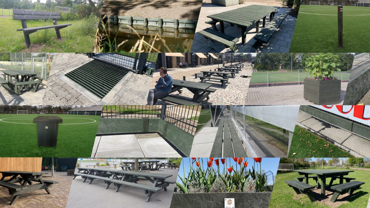 Het begon met balkjes en paaltjes, maar onderhand is het assortiment van Greenmatter aardig in omvang toegenomen: van kantplanken en bloembakken tot buitenmeubilair en walbeschoeiing. Toch ziet Van Diemen Greenmatter niet zozeer als leverancier, maar meer als sparringpartner om met opdrachtgevers samen circulaire oplossingen te verzinnen. 'We hebben in Nederland afgesproken dat we vanaf 2030 50 procent circulair inkopen en vanaf 2050 zelfs 100 procent. Om aan die doelstellingen te kunnen voldoen, zullen alle partijen de schouders eronder moeten zetten. Dat moet zowel aan de voorbereidende kant, bij de aanleg van sportparken, als bij de keuze voor gerecyclede materialen, en bij alles daartussenin.'