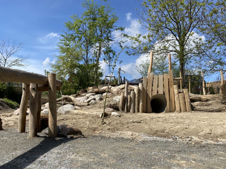 De nieuwe speeltoestellen zijn van FSC robinia hardhout en de ondergrond van de speelvijver is van leem in plaats van vijverfolie