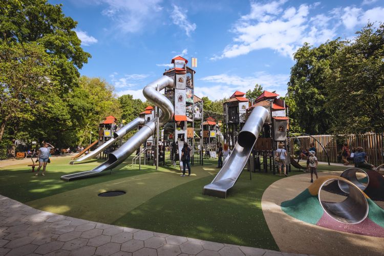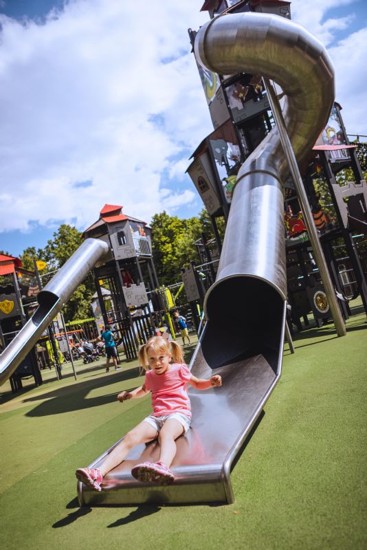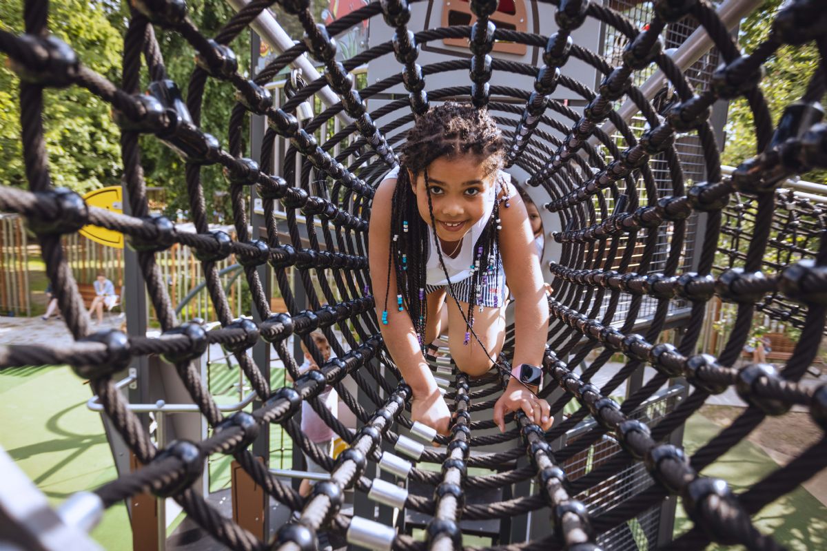 Niet alleen op grote hoogte is er veel te beleven, ook op grondniveau kunnen de kleintjes zich uitstekend vermaken door de toevoeging van diverse speelprikkels