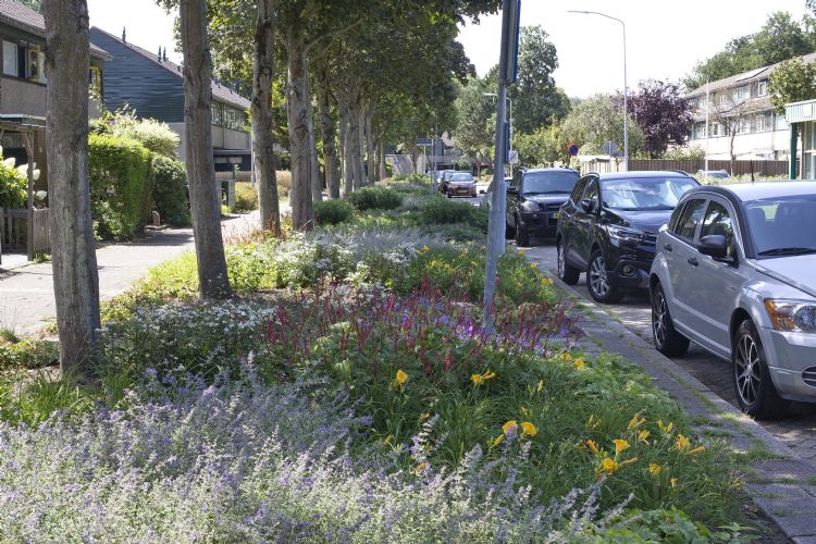 Door vaste planten met heesters of bomen te combineren, creëer je meerdere vegetatielagen. Dit is essentieel om aan een brede biodiversiteit te werken. Niet alleen boven, maar ook onder de grond en direct op het bodemoppervlak is deze combinatie waardevol.