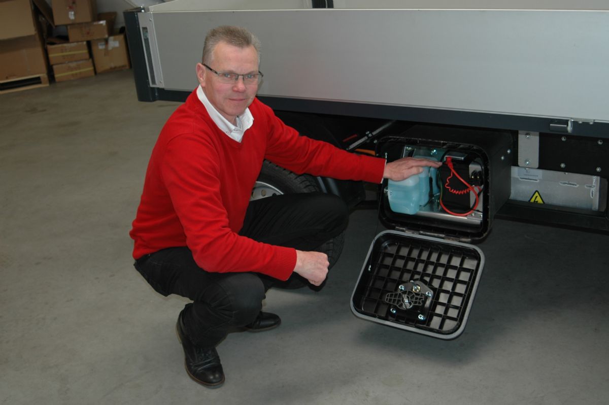 Het is verbazend: op dit voertuig is dus zowel dieselverwarming als elektrische verwarming mogelijk. Pennings opent een box onder aan het chassis. 'Je ziet hier een brandstoftankje. Dat voedt een Webasto-standkachel, waarmee je de Addax kunt laten uitrusten.' Achter het luik van de naastgelegen box schuilt een traditionele 12V-AGM-loodaccu: 'Die verzorgt onder andere de stroom in de cabine en zorgt dat essentiële onderdelen, veiligheidsfuncties en verlichting altijd over elektriciteit blijven beschikken. Het zware accupakket van 14.400 Wh (zie kader, red.) is midden onder het chassis weggewerkt', wijst Pennings. 'En aan de bestuurderszijde van het chassis zit de box waarin de aansluiting zit voor de acculader van het hoofdpakket.' Het demo-model dat we bekijken, heeft een vaste laadbak van 2,16 bij 1,45 m en 30 cm hoge neerklapbare aluminium zijschotten. Uiteraard zijn uitvoeringen met hogere schotten mogelijk: je kunt het zo gek niet bedenken, of er is wel een mogelijkheid om je Addax volledig naar wens te laten opbouwen.