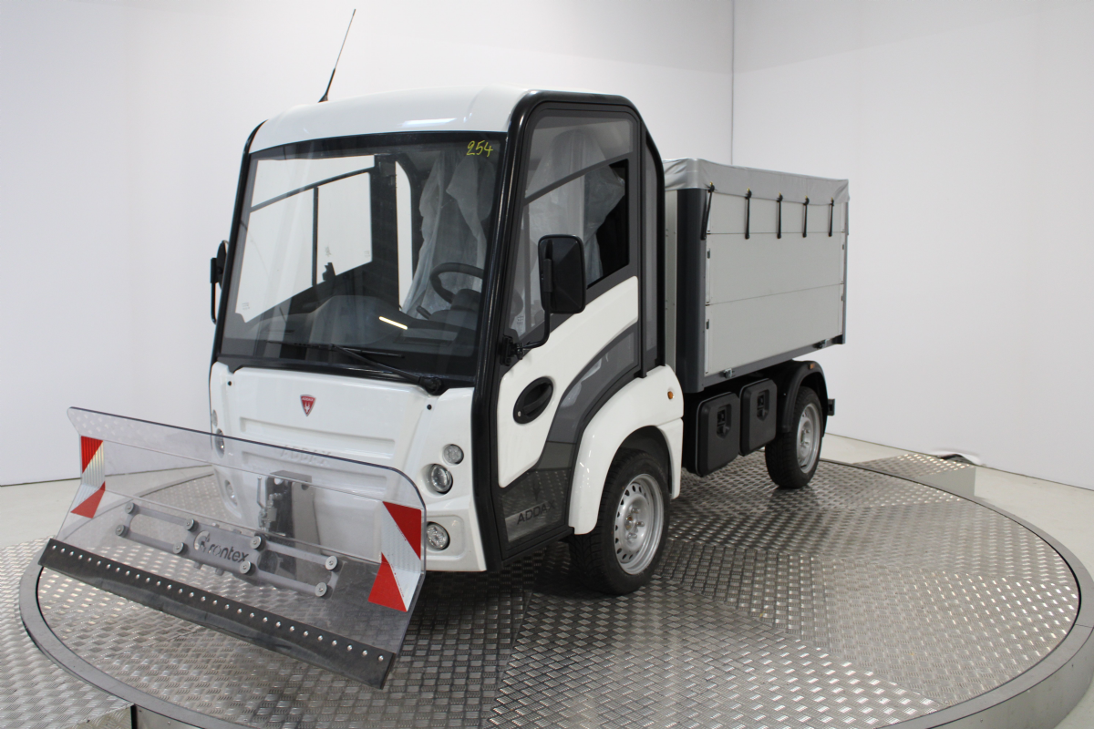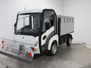 Het voertuig kan zelfs worden uitgerust met een hydraulisch bediende sneeuwschuif voorop, eventueel in combinatie met een zoutstrooier met 380 liter inhoud.