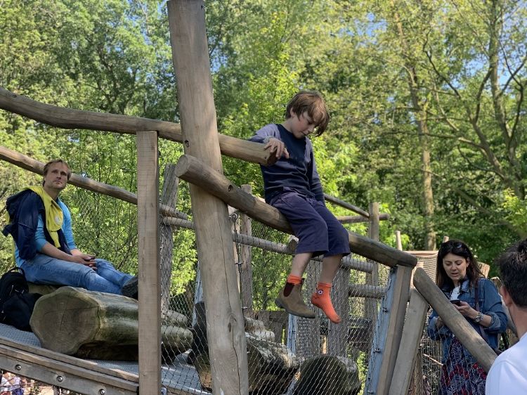 Het Sarphatipark in Amsterdam behoort tot de drukste Europese stadsparken als je kijkt naar de aantallen vierkante meters en bezoekers. En dat is te merken. Vakblad Stad+Groen spreekt af met mede-eigenaar Timo Smith van De Twee Heren om een kijkje te nemen bij de speelplek die dit groenbedrijf heeft gerealiseerd. De zon schijnt en het is al druk in het park, maar nog drukker op de speelplek. Het is lastig om er te bewegen; ik voel dat we de kinderen in de weg lopen. Grappig genoeg is dit precies het idee achter het ontwerp. Smith vertelt: 'We hebben de speelplek expres wat nauw opgebouwd. Ouders zijn tegenwoordig geneigd om hun kinderen letterlijk bij de hand te nemen, ook op speelplekken. Terwijl het juist zo belangrijk is dat kinderen zelf dingen ontdekken, zelf risico's leren inschatten en hun grenzen ontdekken.' Aan het begin van de speelplek is speciaal voor ouders een 'ouderpodium' ontwikkeld. Hier kun je als ouder toch een oogje in het zeil houden.