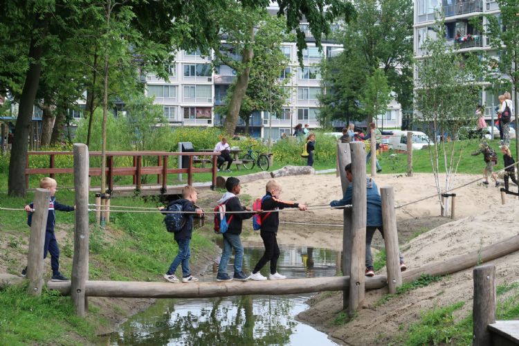 Het speellandschap is een plek geworden voor kinderen van alle leeftijden, waar ook rekening gehouden is met verschillende klimaataspecten. Zo belooft de beplanting de lokale biodiversiteit te stimuleren en helpen de wadi's hemelwater te bufferen en daarmee het riool te ontlasten. De wadi's zijn verbonden met twee extra wadi's rond de naastgelegen flat.