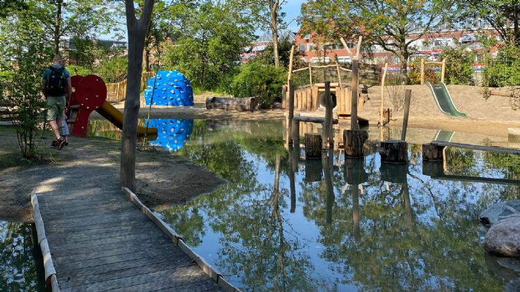 De nieuwe, natuurlijke speeltuin heeft een duidelijke natuurlijke uitstraling. Met veel duurzame inheemse planten, een nieuwe speelvijver, een waterval, drie waterpompen met een natuurlijke waterloop. Verder een wilgentunnel met hutten, kruipbuizen, speelheuvels en nog veel meer spannende natuurlijke elementen, waaronder bijzondere houtsculpturen (i.s.m. Boom woodcarving). Aan alle details is gedacht, zoals een blotevoetenpad, maar ook een spannend pad voor wielers waar je bijvoorbeeld met een rolstoel of skelter overeen kunt. Bij de keuze van de materialen, paden en ondergronden werd ook rekening gehouden met de toegankelijkheid van de speeltuin.