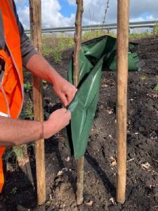 Aquabags voorzien jonge aanplant op moeilijk bereikbare plaatsen van water |