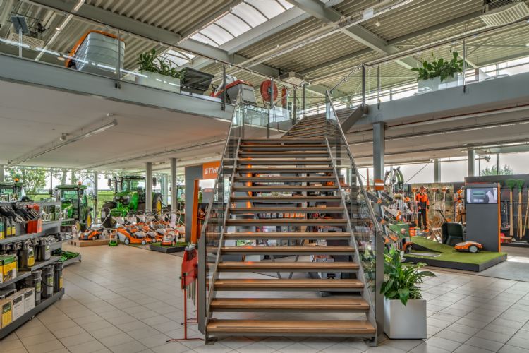 Marketingmanager Ellen de Ridder is met reden trots op het nieuwe bedrijfspand van Kraakman. Ze zegt: 'Het is een fantastische zichtlocatie op een strategische ligging langs de N207. In deze omgeving zitten veel bestaande en potentiële klanten, zowel zakelijk als particulier. De showroom met twee verdiepingen leent zich uitstekend voor de presentatie van ons complete productportfolio: van landbouw- en tuin- en parkmachines tot golf- en grondverzetmachines.'