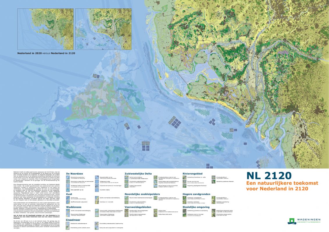 In 2020 kwam de Wageningen Universiteit met de integrale toekomstvisie Nederland 2120: hoe een toekomstbestendig Nederland eruit zou kunnen zien in 2120, als we uitgaan van op de natuur gebaseerde oplossingen (nature-based solutions). Nederland 2120 is een integrale visie; dat wil zeggen dat verschillende wetenschappelijke vakgebieden van de Wageningen University & Research hieraan hebben meegewerkt, bijvoorbeeld vanuit het perspectief van landbouw, biodiversiteit, duurzame energie, water of de circulaire economie. De kaart is geen exacte wetenschappelijke voorspelling, maar eerder een inspirerende denkrichting voor het toekomstbestendig inrichten van Nederland.