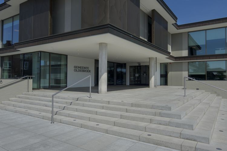Het gemeentehuis van Oldebroek in de gemeente Gelderland is compleet gerenoveerd. Ook het gehele buitenterrein is onder handen genomen. Als verharding voor het bordes en rondom het gemeentehuis is gebruik gemaakt van producten van het in Dussen gevestigde Schellevis Beton. Ook is er gedacht aan de biodiversiteit, door het plaatsen van diverse beplanting en het aanleggen van een wadi.