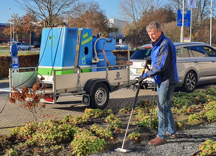 Met de Weedmaster-eM wordt een oplossing gepresenteerd voor chemievrije onkruidbestrijding. Met deze machine kan onkruid worden behandeld op een milieuvriendelijke manier met kokend heet water. Hierdoor wordt de celstructuur van het onkruid vernietigd. Met een constante werktemperatuur bij de spuitmond levert de Weedmaster-eM constante prestaties op een zeer hoog niveau, met een snelle werking als resultaat.