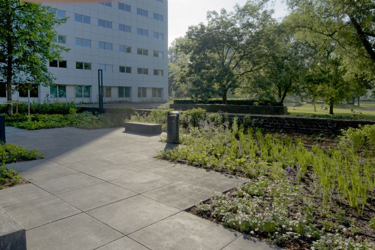 Gerecyclede betontegels in gerenoveerde Mien Ruys-tuin