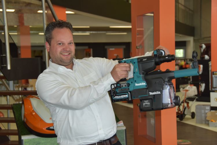 Het bedrijf doet al lang goede zaken met dit laatste merk. Rondkijkend in de showroom in Veghel constateren we dat in het Makita-displayeiland een accu-aangedreven doorslijper ontbreekt. Van Stihl staat er wel zo'n machine in de schappen. Paul van der Poel: 'Zo leveren we van Makita professionele grondboren, hakhamers, koffiezetmachines en stofzuigers, allemaal op accu. Je treft dus ook een bouwradio van Makita aan, maar de tuin- en parkmachines zijn van Stihl. Makita powertools zijn de aanvulling voor het gereedschap dat Stihl niet in het assortiment heeft.' De productmanager en adviseur van Makita, Arjen Peeters, vertegenwoordigt het bedrijf in het vraaggesprek. Hij vertelt: 'Onze machines en apparaten werken op één van de twee Makita-accuplatvormen. Dat is het 18V LXT-platform of het 40V Max XGT-platform. De laatste gebruiken we voor intensief, zwaar werk.'