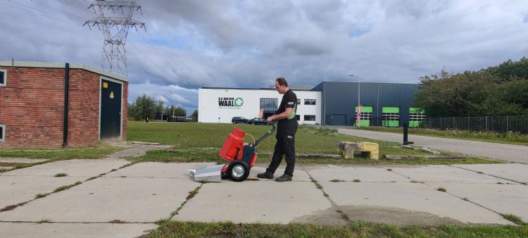Naast een draaiknop die de maximale werksnelheid regelt, is er dus ook een duimgashendel. Hoe verder je die indrukt, hoe sneller de centrale elektromotor de wielen aandrijft. Wat de werking tegen onkruid betreft, verwijst Van der Waal naar de ervaringen met eerdere WeedAir-types: 'Ik zag allereerst dat deze WeedAir veel bevestigingspunten voor het transport heeft. Dat is iets waar veel fabrikanten onvoldoende aandacht voor hebben. Juist als je er als zzp'er of hovenier mee van karwei naar karwei trekt, is het van groot belang dat je sjorbanden aan die hijsogen kunt bevestigen. De bediening ervaar ik als prettig en overzichtelijk. De ontstoken brander brandt duidelijk hoorbaar. Als dit niet het geval is, heeft er geen ontsteking plaatsgevonden. Verder produceert de machine maar weinig geluid. Zelfs trillingen van de aandrijving heb ik niet kunnen constateren.'