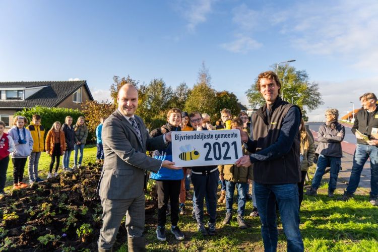 Naast de titel ontving de gemeente ook een insectenhotel van TP Solar, bloembollen van Jub Holland, bijvriendelijke planten van Griffioen Wassenaar en ecologisch advies van Tauw.