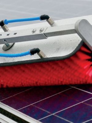 Verschillende soorten vervuiling verminderen namelijk de energieopbrengst van de panelen. Die vermindering kan variëren van 5 tot wel 20 procent. De vervuiling kan bestaan uit atmosferische vervuiling, vogeluitwerpselen, roet of korstmossen. Steeds meer investeerders en financiers stellen volgens Tom de eis dat er bij de ontwikkeling en realisatie van een project een gedegen onderhoudsplan wordt meegenomen. Reinigen maakt daarvan deel uit. Tom: 'In 2020 voegde Flevo Solar Wash een reinigingsrobot van het type Solar Cleano type F1 toe aan de bedrijfsmiddelen. Hiermee kunnen wij op efficiënte wijze grote hoeveelheden zonnepanelen op schuine daken reinigen. Op basis van de locatie en de ligging van de zonnepanelen kiezen we bij het reinigen voor roterende borstels op een stelensysteem of voor deze reinigingsrobot. Met behulp van puur osmosewater en de juiste reinigingsapparatuur worden de zonnepanelen weer helemaal schoon. Het waswater komt in de stedelijke omgeving meestal in het daartoe bestemde riool terecht.'