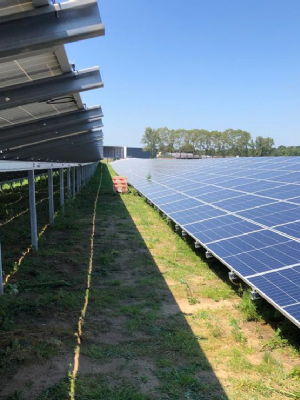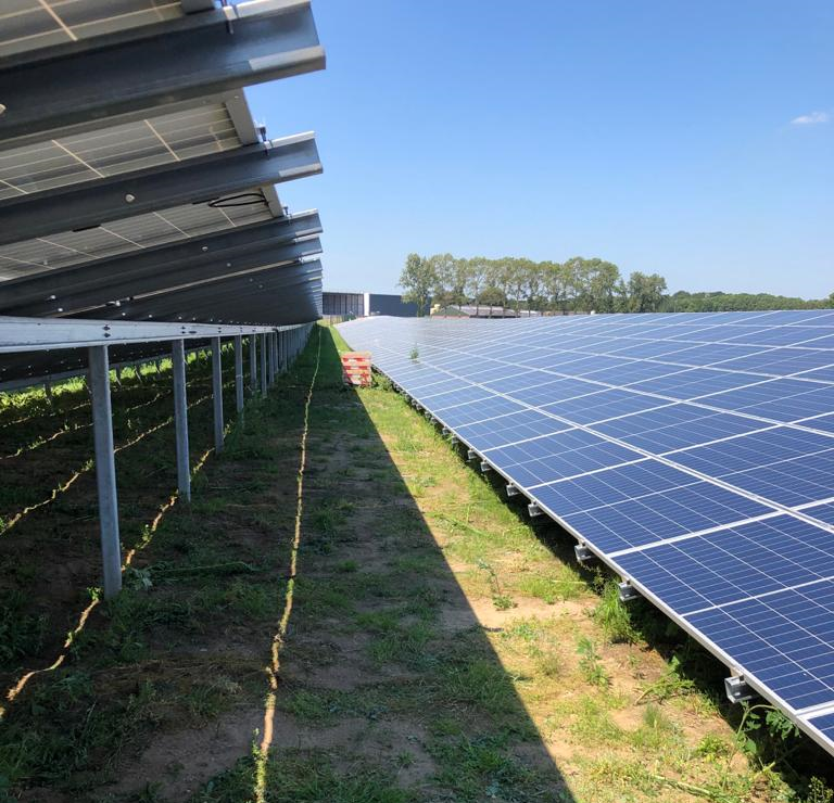 Om zonneparken te realiseren, worden grote percelen grond gebruikt. Soms nog voordat het project opgeleverd wordt, is het al nodig het gras in en om het zonnepark te maaien. In veel gevallen zie je ook schapen grazen op zonneparken, maar die kunnen niet alle begroeiing onder de panelen afgrazen. Flevo Solar Wash heeft verschillende bedrijfsmiddelen waarmee onder en tussen de stellages door gemaaid kan worden. Voor dat doel breidde het bedrijf zijn bedrijfsmiddelen uit met een zeer laag gestelde maaier. Tom: 'Het is een radiografisch bestuurde Raymo (zie artikel elders in Stad + Groen, red.). In combinatie met onze trekker met klepelmaaier en een bosmaaier maaien we zonneparken door heel Nederland, in grootte variërend van 1,5 tot 7 hectare per locatie.'