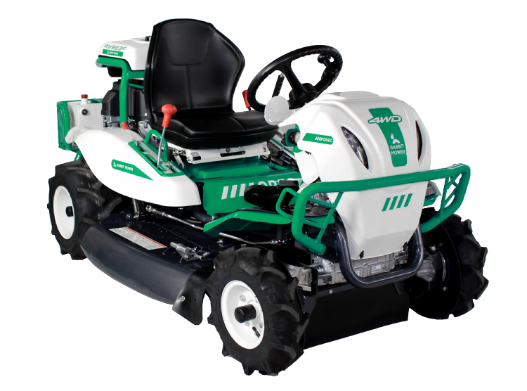 De Orec Rabbit RM982F 4wd-zitmaaier heeft een zwevend maaidek, dat 98 cm breed is. Deze constructie zorgt ervoor dat de twee messen aan die éne spindel de bodemcontouren goed volgen. De maaihoogte is traploos instelbaar van 50-110 mm; een gasveer ondersteunt hierbij de hoogtebediening. Wat het bedieningsplatform voor de chauffeur betreft: dit kent geen obstakels. De bestuurder kan kiezen uit één van de drie standen van het stuur, zodat bestuurders met elk postuur een comfortabele werkplek hebben. De hydrostatische aandrijving wordt zowel met de hand als met de voet bediend. De rijsnelheid kun je traploos regelen, zowel voor- als achteruit. De Orec Rabbit RM982F is wendbaar en ondervindt geen noemenswaardige hinder van obstakels. De in Japan ontworpen en geproduceerde machine beschikt over banden met een tractorprofiel. Ze geven de machine veel grip op de bodem. Daardoor leent die zich er ook voor om ermee te werken onder minder gunstige weersomstandigheden of bij een slechte bodemgesteldheid.