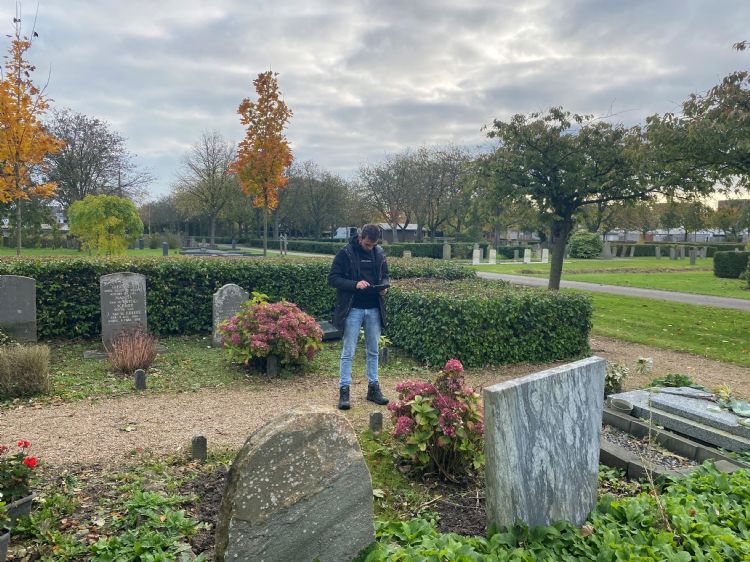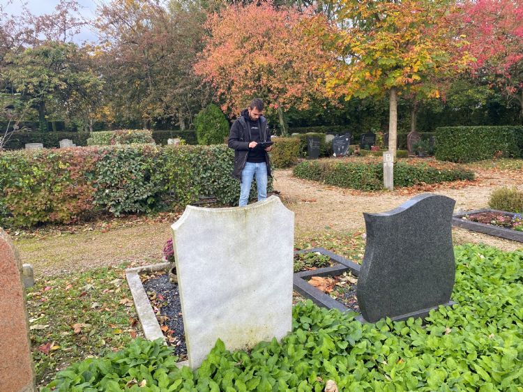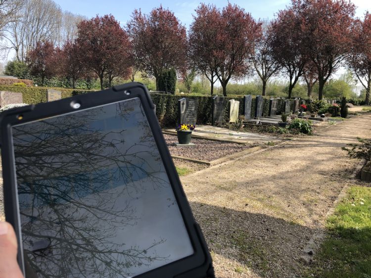 Wanneer de digitale plattegrond klaar is en gekoppeld is aan de administratie, gaan de begraafplaatstechneuten de begraafplaats op om met behulp van een tablet de locatie van elk graf zorgvuldig te controleren, te inventariseren en te fotograferen.