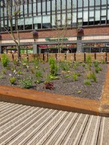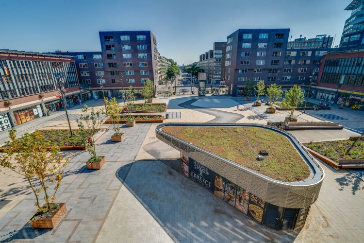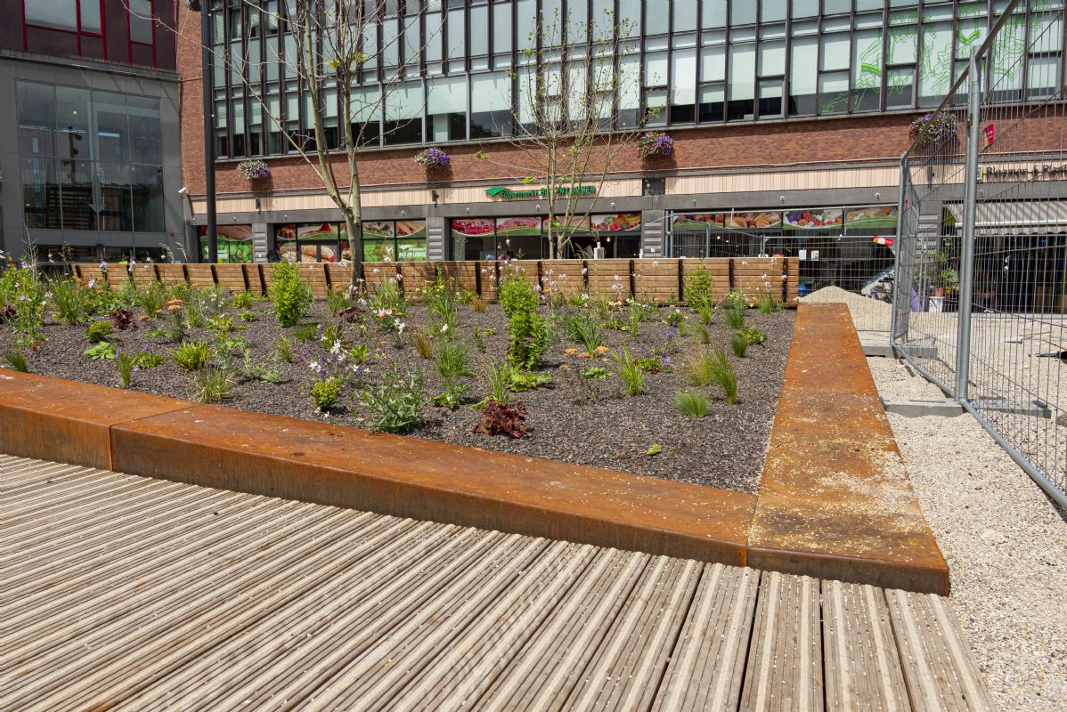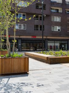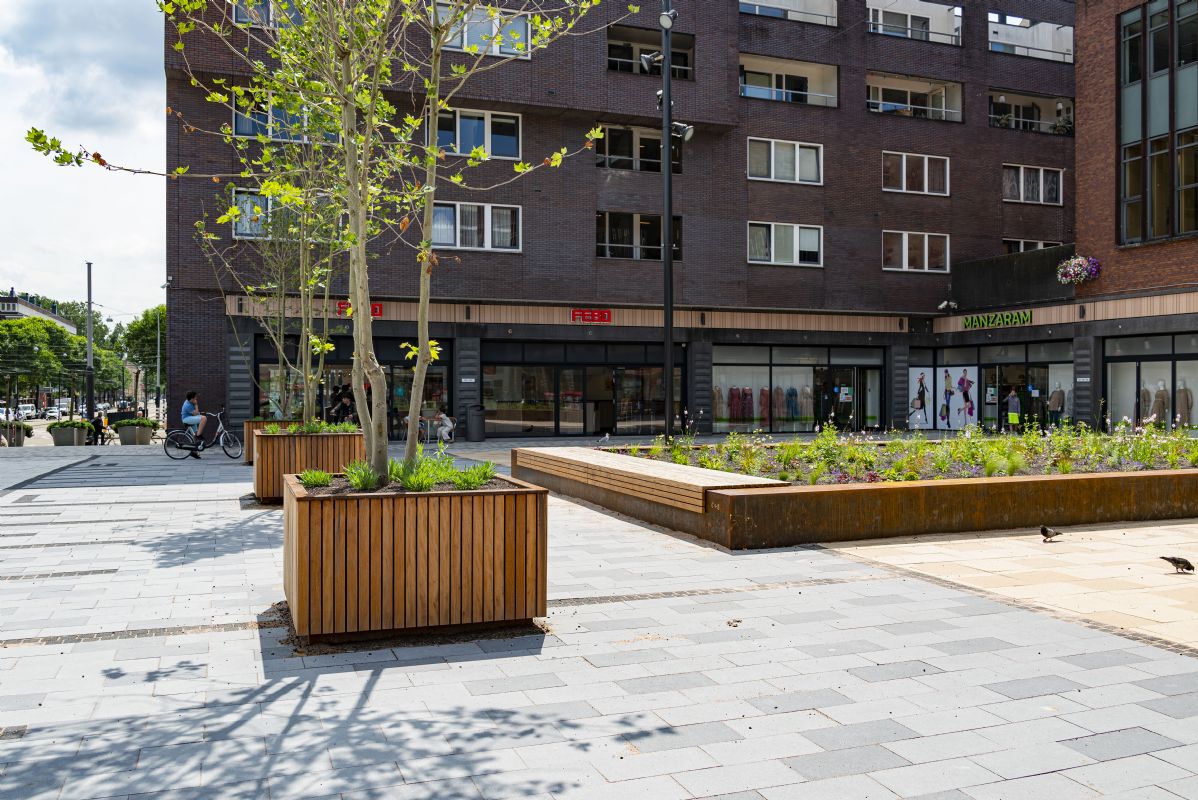 Het ontwerp van het nieuwe plein werd opgetekend door architectenbureau SUM Architecten uit Hilversum. Furns, leverancier van meubilair voor de openbare buitenruimte, in samenwerking met Flora Nova de plantenbakken, borderelementen en zitbanken geleverd, vertelt Sil van Duijnhoven van Furns.