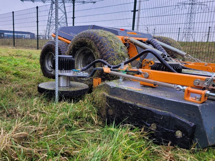 Machines4green heeft met fabrikant Raymo in 2021 handen uit de mouwen gestoken om aan die vraag gehoor te geven: samen ontwikkelden en testten ze een elektrisch aangedreven palenmaaier die bevestigd kan worden op het R52-maaidek van de Raymo Electric. 'Natuurlijk moest de maaier elektrisch worden en met een afstandsbediening te besturen zijn', zegt Van der Tol.
