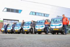 | V.l.n.r. Martijn Beekwilder (Goupil Nederland), Tommy Frederiks (Utrecht) en Bas van der Veer (rechts) met de gloednieuwe Goupil G6 afvalinzamelwagen. |