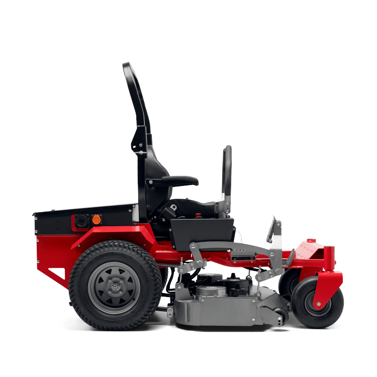 De stuurhendels kunnen desgewenst in hoogte worden ingesteld. Verder is deze Cramer-zero-turnmaaier standaard voorzien van een goed beklede en geveerde bestuurdersstoel met armsteunen die trillingen absorberen. Gebaseerd op de gewichtsinstelling kun je de veerweg van de bestuurderstoel instellen, om de veiligheid en het comfort te bevorderen. Op de machine zijn bovendien veiligheidsgordels gemonteerd. De machine remt automatisch af als de bestuurder niet aanwezig is of wanneer er een systeemfout optreedt. Ook kun je de machine op een elektrische handrem zetten, door de twee stuurhendels buitenwaarts te plaatsen. Dit vergemakkelijkt bovendien het verlaten van de machine. De machine, met een totaalgewicht van 630 kilo, heeft een modulaire bouw. Het frame bestaat uit een kokerbalkconstructie. In de vier hoekpunten van het frame zijn bevestigingspunten voor spanbanden, waarmee je hem tijdens transport goed en veilig kunt vastzetten op een aanhangwagen.