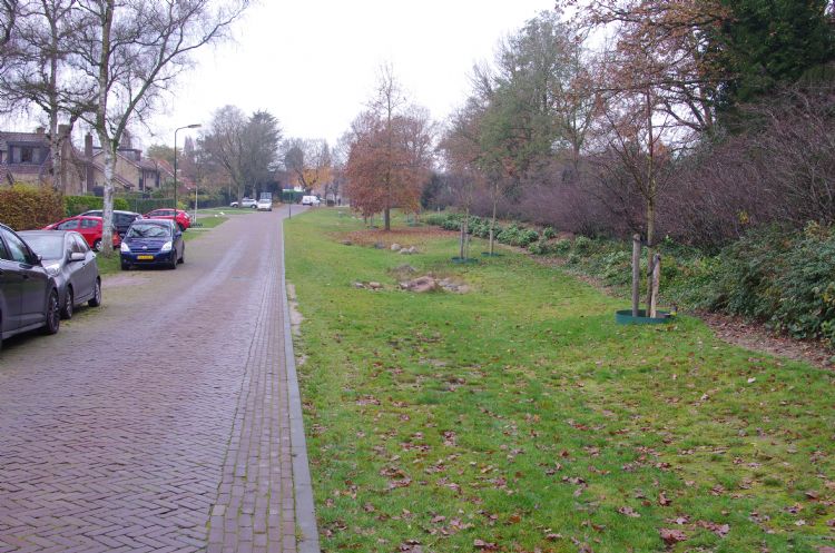 De wateroverlast voor bewoners was enorm op deze locatie in Amerongen, vertelt de wethouder. 'Bij een flinke bui liep het water bij sommige huizen door de voordeur naar binnen en door de achterdeur naar buiten.' Een serie ondergronds aaneengeschakelde wadi's heeft dat probleem opgelost. 'Mensen zijn nu, twee jaar na de voltooiing, blij met deze maatregel.'