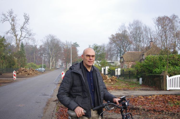 De fietstocht met de wethouder leidt dan ook langs verschillende plaatsen in de gemeente waar wordt gewerkt aan waterretentie. Maar eerst voert de tocht vanuit het gemeentehuis in Doorn naar Leersum, waar de schade die de valwind heeft aangericht nog steeds overal te zien is.