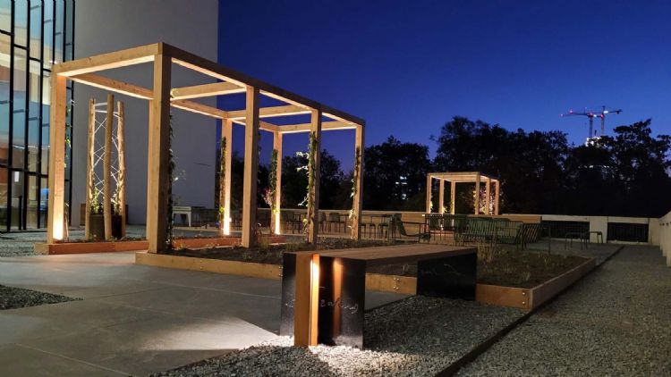 Projectinrichter Boerplay mocht het dakterras ontwerpen en daarna uitvoeren. Samen met het Onderwijscentrum en de studenten werd er gekeken naar de wensen en werd er in september 2021 begonnen met de realisatie van de daktuin. Omdat de tuin de hele dag door wordt gebruikt, is verlichting ook een belangrijk aspect. Sfeervolle verlichting is hierbij ontworpen door Boerplay.