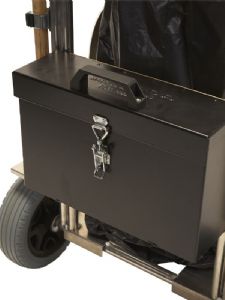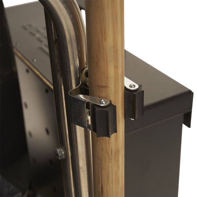 Dankzij de klemmen op de trolley kunnen gebruikers eenvoudig grote gereedschappen meenemen, zoals een bezem, schep en schoffel. Kleiner handgereedschap kan opgeborgen worden in de zwart gepoedercoate stalen opbergkoffer.