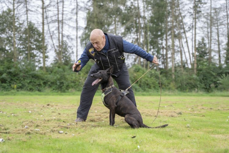 | Hondentrainer Jan Reuvekamp met een van zijn speurhonden |