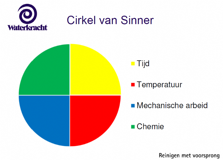 Kleinnibbelink is nauw betrokken bij de interne opleiding voor de medewerkers van Waterkracht op het specifieke vakgebied van reinigen met waterkracht. Hij leert hen wat van belang is bij het reinigen. Zijn zakelijke motto hierbij is, zo vertelt hij: zeg wat je doet en doe wat je zegt. De redactie legde deze specialist een aantal vragen voor. V: Je noemt schoonmaken, ook in de stedelijke omgeving, dus een vak? A: Absoluut. Ik vind het van groot belang om inzicht te hebben in de reinigingstechniek en die te doorgronden. Aan geïnteresseerden leg ik dat meestal uit aan de hand van de cirkel van Sinner. Herbert Sinner is een Duitse reinigingsspecialist, die stelt dat bij reiniging slechts vier factoren tellen. Dat zijn tijd, temperatuur, mechanische arbeid en chemie. Zodra je bij reiniging aan één van die onderdelen niet of onvoldoende voldoet, krijg je een object niet schoon. En als je één van de onderdelen verandert, beïnvloedt dat de andere. Maar wat nog erger is: als je het werk onjuist uitvoert, kun je het oppervlak van het te reinigen object ruïneren. Een treffend voorbeeld van een uitdaging is het verwijderen van graffiti van een monumentaal gebouw dat is opgetrokken uit kwetsbare stenen. Een verkeerde benadering van deze reinigingsuitdaging kan de stenen onherstelbaar beschadigen. V: Die tijdsfactor van Sinner, dat lijkt erg logisch ... A: Klopt! Als je maar lang genoeg reinigt met koud water, wordt alles uiteindelijk schoon, maar door lang of te intensief te reinigen, kun je schade veroorzaken. Lees mijn voorbeeld van het handen wassen maar eens (zie kader, red.). Daarnaast moet je tijd ook als een economische factor zien. Hoe sneller je iets reinigt zonder beschadiging, des te blijer maak je je opdrachtgever of werkgever. Het is dus van groot belang om goede apparatuur te kiezen die bij de klus past. V: Die mechanische arbeid, wat heeft reinigen in de stedelijke omgeving hiermee van doen? A: Je moet de hogedrukreiniger zien als de factor 'mechanische arbeid'. Uitgedrukt in getallen gaat dat om de werkdruk en het aantal liters water per minuut. Samen staan die voor de reinigingskracht die je gebruikt, wat zich vertaalt in de terugslagkracht die je als tegendruk van de reinigingslans ervaart. Een hobbymachine heeft een wateropbrengst van circa 5 liter per minuut bij een werkdruk van 80-120 bar. Daar heb je te maken met een tegenkracht van bijna 1,1 kg per m². Bij een semiprofessionele machine met eenzelfde werkdruk en een wateropbrengst van 10 liter praat je algauw over het dubbele. Het verband tussen wateropbrengst, werkdruk en tegendruk is overigens bij een verschillende druk niet lineair. Bij (semi)professionele reinigingsmachines is de factor mechanische arbeid veel groter: we spreken hier over minimaal 10 tot 15 liter per minuut bij een druk van meestal tussen de 80 en 200 bar. In sommige industriële reinigingstoepassingen is dat zelfs 200 tot 4.000 bar! Hier loopt de tegendruk soms op tot 25 kg. Dat gebeurt bijvoorbeeld bij bruggen en viaducten om het betonoppervlak te reinigen of op te ruwen, bijvoorbeeld om de effecten van betonrot te kunnen herstellen door het aanbrengen van een nieuwe betonlaag. Maar we zien het ook bij toepassingen in de petrochemische industrie. V: Als iets niet snel schoon wordt en hogere druk en meer koud water ook niet helpen, wat dan? A: Dan komt temperatuurverhoging van het reinigingswater in beeld. Dat gaat vaak gepaard met een vermindering van de werkdruk en de flow van het reinigingswater; denk hierbij ook aan de uitleg van Sinner. Bij verhoging van de temperatuur tot het kookpunt gebeurt er echt iets bijzonders. Dit water bevat veel zuurstofbellen, die in aanraking met het vervuilde oppervlak een thermoshock veroorzaken. Dit is een mini-explosie van de luchtbellen, die vervolgens alleen de vervuiling verwijderen en het oppervlak niet beschadigen. Met dit water kun je bijvoorbeeld de meeste graffiti verwijderen met lage druk (lees: mechanische arbeid), en zonder de factor chemie uit de cirkel van Sinner te gebruiken. Deze kokendheetwater- of KHT-techniek is door Waterkracht ontwikkeld en gepatenteerd. Deze techniek wordt ook toegepast bij de Weedmaster-onkruidbeheersingsmachines. V: Dus: graffiti op een monument altijd verwijderen met kokend heet water en lage druk? A: Nee, zo mag je dat niet stellen. Bij grote projecten is het altijd verstandig om als professional enkele proefstukken te zetten, om te beoordelen met welke uitgangspunten je kunt werken. Hierdoor wordt de factor tijd bekend en kun je een realistische calculatie maken. Zo voorkom je dat de gebruiker de druk (mechanische arbeid) vanwege tijdsdruk hoger zet om de eindtijd te halen. En je verkleint het risico dat oppervlakken beschadigd raken en na afronding van het project een ontevreden opdrachtgever zich meldt. Vandaar dat gemeenten bij gevelreiniging vaak gebruikmaken van daarin gespecialiseerde bedrijven. V: Als de reiniging nog steeds niet lukt, schakel je dan over op stoom of gebruik je chemie? A: Allereerst: met stoom verlies je bijna volledig de factor mechanische arbeid. Dat is dus meestal geen optie! Hiermee wordt de factor tijd weer heel groot. Een reinigingsmiddel is dan het enige wat overblijft, bijvoorbeeld bij sommige hardnekkige vervuilingen. De chemische producten mogen vanzelfsprekend niet agressief zijn voor het te behandelen oppervlak. Ook hier is het gebruik van een proefstuk op zijn plaats. Het oppervlak is dus van belang: gaat het om echt marmer, waarop je op volle druk kunt werken, of om gevoelige, poreuze zandsteen? Benut voor een maximaal resultaat de beste keuzes uit de cirkel van Sinner. V: Welke effecten schrijf je toe aan de nozzles van de spuitlans bij reiniging? A: De nozzle is een van de belangrijkste delen van een hogedrukreiniger. Een versleten of beschadigde nozzle kan wel 25 procent minder reinigingskracht hebben. Verder zijn er twee types nozzle: de vlakstraal- en de puntstraalnozzle. Een nozzle geeft de waterdeeltjes hun snelheid. Een pun