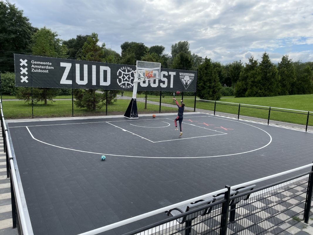 Van Diemen: 'De tegels worden met een interlocking-systeem aan elkaar gelegd. De sportvloeren kunnen worden toegepast op elke vlakke en verharde ondergrond, zowel permanent als tijdelijk. Aan het einde van de levensduur zijn de modulaire sportvloeren 100 procent recyclebaar.' De modulaire sportvloeren van W&H Sports kunnen bijvoorbeeld worden toegepast als trapveldje, 3x3-basketbalveld of baseball-5-veld, de straatvariant van een honk- en softbalveldje.