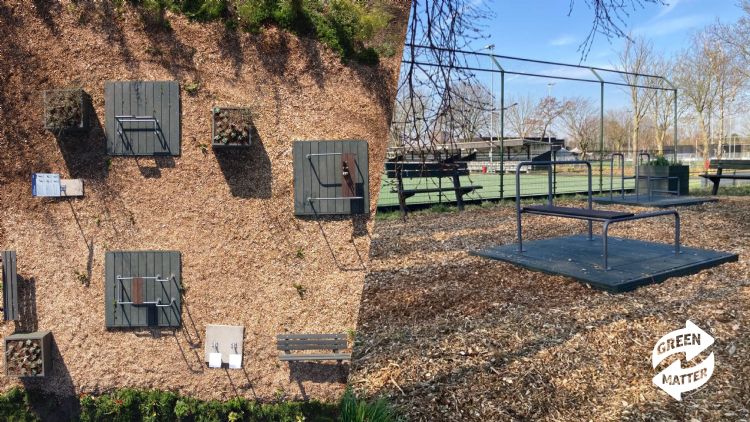 De gerecyclede vlonderplanken van Greenmatter zijn vervaardigd uit gerecycled kunstgras van te vervangen kunstgrasvelden (geen productieafval). De planken zijn leverbaar in diverse afmetingen en te gebruiken voor vlonders en looppaden, maar ook als deckplank voor bruggen. Daarop kunnen outdoorfitnesstoestellen geplaatst worden. De outdoorfitnesstoestellen van Dr. Wolff zijn vervaardigd uit edelstaal. Ze zijn bedoeld voor functionele training voor kracht, core stability en mobiliteit.