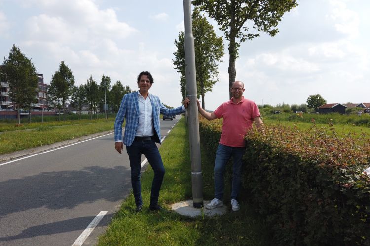 | Joost de Vogel (Essie, links) en John van Dorst (gemeente Barendrecht, rechts) bij een Eco2shield in Barendrecht |
