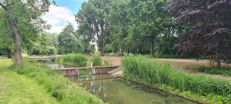 Om een geleidelijke verlaging van het waterpeil tot 30cm te realiseren, zijn er schotbalken toegepast in buizen, ook wel duikers genoemd. Deze worden jaarlijks bijgesteld, waardoor het bestaande groen zich geleidelijk kan aanpassen aan het veranderende waterpeil. Door de aanleg van stuwen kan het waterpeil worden gereguleerd. Met duikers is het water in de omgeving met elkaar in verbinding gebracht. 'De verbindingen zijn tot stand gekomen door de duikers onder de padenstructuur in het park door te leggen. Zo heeft de vijver, die eerst geïsoleerd was, weer doorstroming gekregen,' legt Van Langen uit. 'Dit heeft een positief effect op de waterkwaliteit.' Met spindels, grote schijven in de duikers, kan het water ook weer worden afgesloten, bijvoorbeeld als er ijsvorming op het water ontstaat, zodat er geschaatst kan worden. Tot slot zijn er natuurvriendelijke oevers aangelegd, versterkt met een onderwaterbeschoeiing. 'In de oude situatie lag de beschoeiing bovengronds,' legt Van Langen uit. 'Onderwaterbeschoeiing is prettiger, deze is niet zichtbaar en veel aangenamer voor de fauna.'