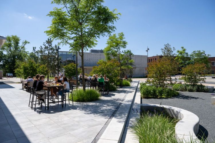 De nieuwe Brainport Human Campus in Helmond bestaat uit een centraal plein met veel natuur. Het groen is de verbindende factor tussen een familie van bedrijven met verschillende architecturen. Dit project heeft bureau The Dutch Wave 'werkgeluk' vertaald naar een multifunctioneel plein door middel van nauwe samenwerking met opdrachtgever Driessen Groep en leverancier MBI De Steenmeesters.