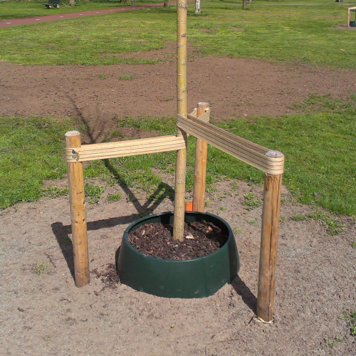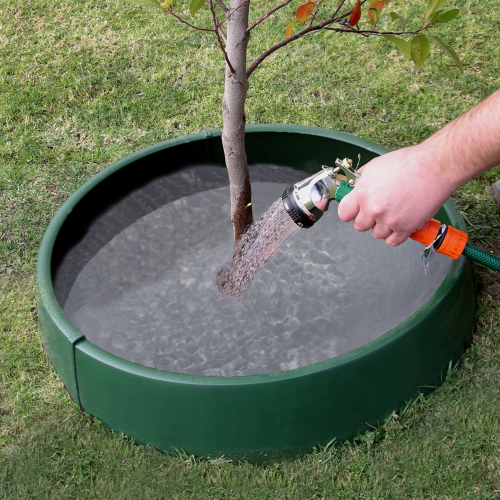 Bij nieuwe aanplant is water geven essentieel, vooral tijdens de steeds drogere zomers waarmee we in toenemende mate kampen in Nederland. Het plaatsen van een gietrand rond zo'n jonge boom biedt uitkomst. De opstaande kunststof rand gaat waterverspilling tegen door het water bij de watergift direct naar de wortelkluit te leiden. Ook helpt de rand om mulch, compost of andere bodembedekking op zijn plaats te houden.