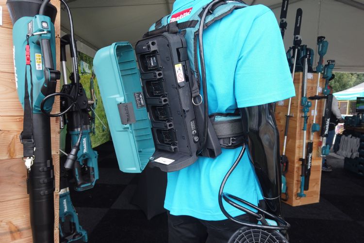 De 40 V-accu's van de elektrische ruggedragen bladblazer van Makita passen op alle XGT- én 2x18 V LXT-modellen.