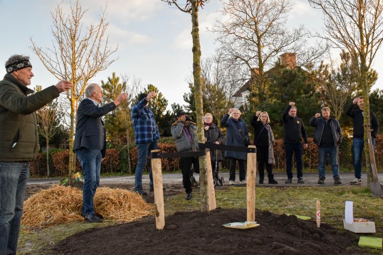 Het memorabele evenement op het terrein van Jub Holland, dat werd voorgezeten door directeur Robbert Uittenbogaard, eindigde met een toast op de boom en Van den Akker aan de hand van een groen likeurtje (Takkensap).
