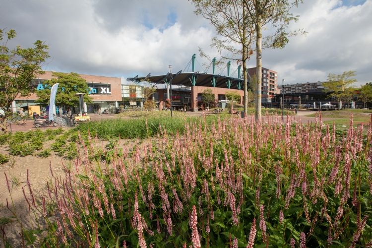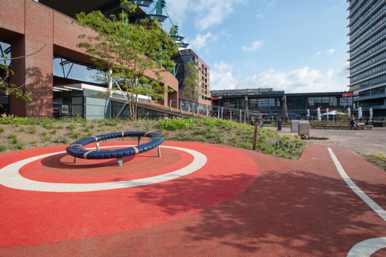 Het opnieuw ingerichte plein is een ontmoetingspunt te midden van bestaande en nieuwe winkels en woningen. Op het plein zijn groene eilanden van gras, bloeiende planten en bomen te vinden. Daarnaast is er ruimte voor sporten en spelen met een basketbalveld, waterspuwers en speeltoestellen. Het fietspad is vervangen en er komen meer stallingsplekken bij de Fietswacht. Tot slot zijn er meer zitplekken gecreëerd en bovenop de voetgangersingang van de parkeergarage is een tribune geplaatst.