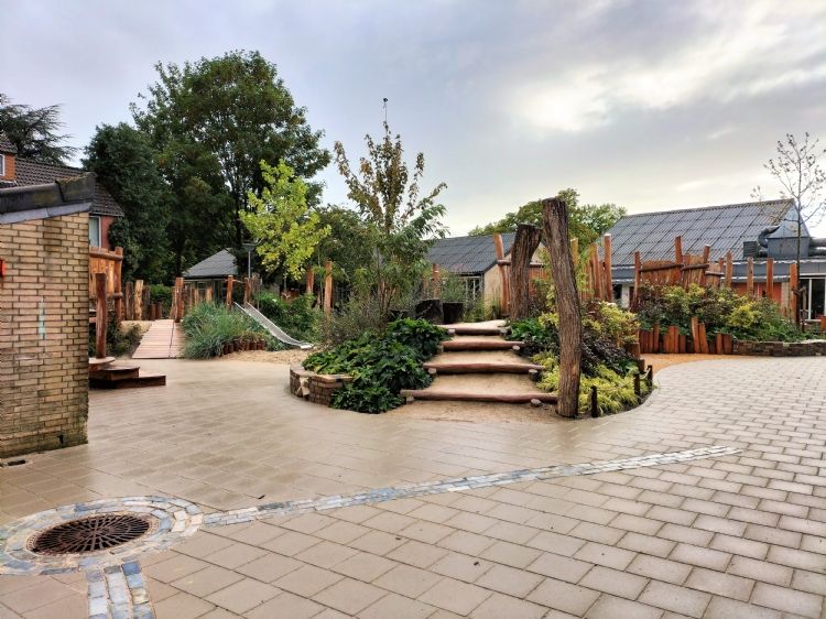Het versteende schoolplein van Basisschool De Spits in Utrecht is getransformeerd tot een groen speelparadijs. Het plein is aangelegd door Multi-Tuin en Landschap, naar een ontwerp van Bureau RIS.