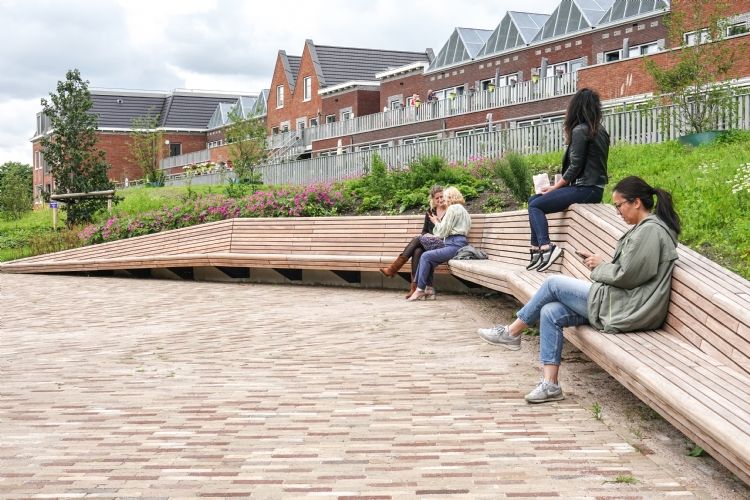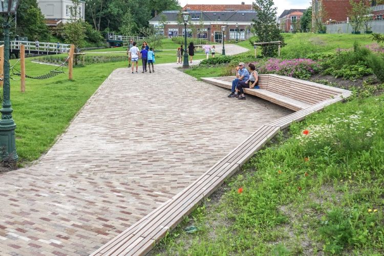 Glooiende hellingen en een natuurlijke speeltuin nodigen uit tot spelen. De hoogteverschillen maskeren de enkele overgebleven parkeerplaatsen. Het wandelpad meandert door het park en wordt geflankeerd door lineaire bankopstellingen van Streetlife met een keerwand-functie. Het park nodigt uit tot ontmoeten, rusten en spelen. Ook maakt het verbinding met de bijzondere geschiedenis van deze plek en roept gevoelens van nostalgie op.
