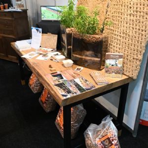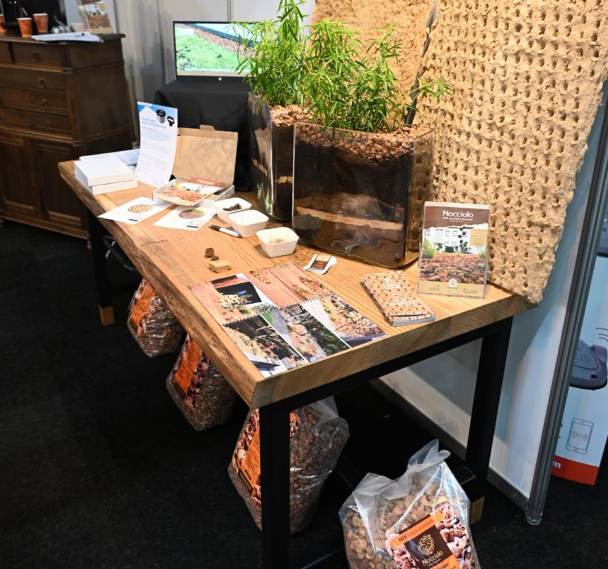 Nocciolo toont het certificaat bij de stand op De Groene Sector Vakbeurs. Rechts een selectie producten.