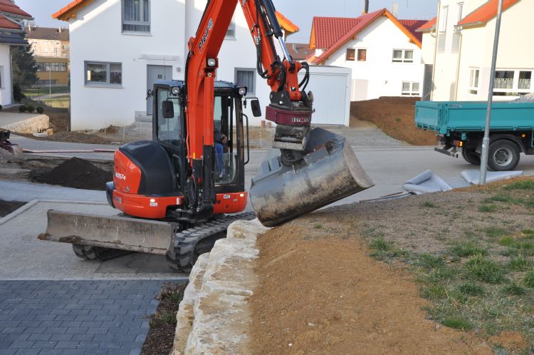 Wat de Holp-aanbouwdelen volgens Grave interessant maken, zijn vooral de draaikoppen. 'Je kiest vaak tussen een kantelsysteem, een draaisysteem en een draai-kantelsysteem. Als je een kantelsysteem kiest en dat andersom op je graafmachine wilt plaatsen, moet je dat eerst loskoppelen en dan weer aankoppelen. Dat kost tijd. En het aantal draaihoeken dat je kunt maken, is beperkt. Met aan draaistuk kun je 95 procent meer hoeken bereiken en werk je al snel 40 procent sneller. Dat is bijvoorbeeld ook handig voor een hovenier. Als je vlak langs een gevel moet graven, kan dat met een draaistuk veel makkelijker, zonder de gevel te beschadigen.'