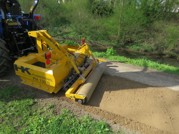 Net als een wegschaaf beschikt de Planierhobel over een stevig schuifbord. Dit is echter tweedelig uitgevoerd, waarbij het vaste deel haaks op de rijrichting staat. Scharnierend in het midden van dit schuifbord is een stevig verstelbaar stalen bord bevestigd. Dit kan je als verdeelschild gebruiken en daarmee losgemaakt verhardingsmateriaal of bijvoorbeeld zand op zandpaden rechts of links naar de zijkant verplaatsen. Zijborden aan het schuifbord begrenzen hoever dit al rijdend naar de buitenzijde wordt verplaatst, zonder dat zich daarbij hoge bruggen vormen. De constructie stelt je ook in staat een halfverharding of een zandbed zonder wegbouwmateriaal aan te vullen weer op profiel te leggen.