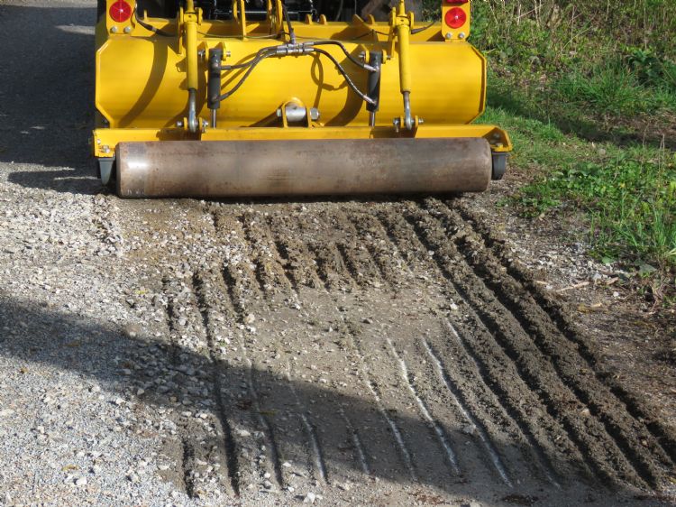 Maar daarvoor moet de bestaande ondergrond eerst wel losgemaakt worden. Dit gebeurt met een set van zeer stevig uitziende beitels. Die beitels zijn in twee rijen bevestigd aan een stevige, vergrendelbare balk, die je met behulp van een hydraulische cilinder kan laten zakken en heffen. De beitels zijn dankzij het gebruikte Hardox-staal en de widia-punten zeer slijtvast. Van Breda jr. zegt hierover: 'Afhankelijk van de druk maken deze halfverhardingsmateriaal los tot een diepte van tien centimeter. Hoe zwaarder de tractor, hoe agressiever en dieper je het materiaal los kan maken. De gedachte hierachter is uiteraard het wegwerken van kuilen en bulten in de verharding en het verbeteren van de waterdoorlatendheid. Je kan hiermee bijvoorbeeld een verharding die vanaf de zijkanten door onkruid overwoekerd is, zijn oorspronkelijke breedte en uitstraling weer teruggeven. Uiteraard bestaat de eerste werkgang altijd uit het bewerken van het oppervlak met de stalen beitels.'