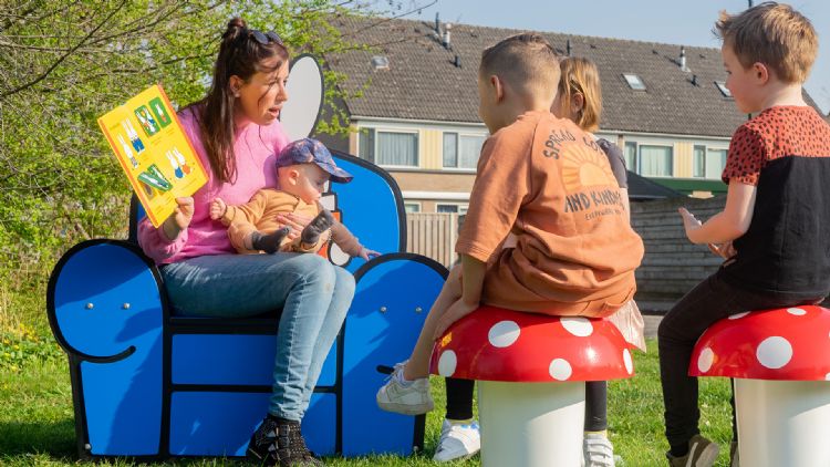 | Buiten voorlezen in de voorleesstoel van nijntje |