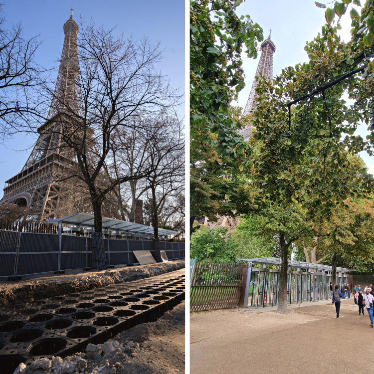 TreeBuilders ontwierp samen met Vogt Landscape Architects de twee lanen langs de Eiffeltoren om bestaande bomen een boost te geven. Er werd gekozen voor het TreeParker-systeem, omdat dit de bestaande bomen rondom dit adembenemende werelderfgoed extra groeicapaciteit geeft. Twee jaar na de toepassing van TreeParker staan de bomen langs de Eiffeltoren in volle bloei!