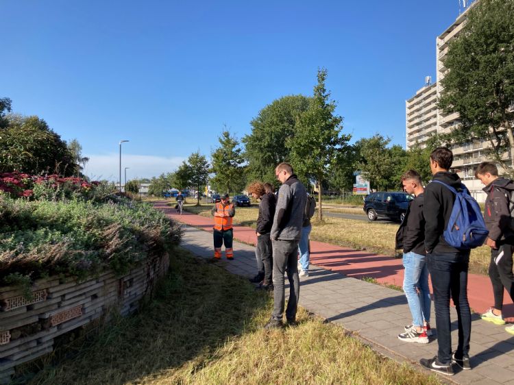 | | Leerlingen ervaren wat er komt kijken bij het aanleggen van een daktuin. |